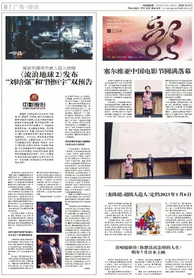 本报讯 为期五天的2022塞尔维亚中国电影节于12月18日圆满落幕。本次电影节由中国驻塞尔维亚大使馆...