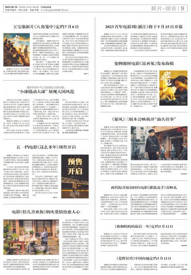 本报讯 5月15日-19日,2023青年电影周(浙江)将在杭州举行。本届电影周的主题是“让青年人成就...