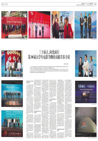 第30届大学生电影节启动仪式嘉宾合影“向光而行——大学生电影节30周年特别对话”环节黄会林、陶玉玲在...