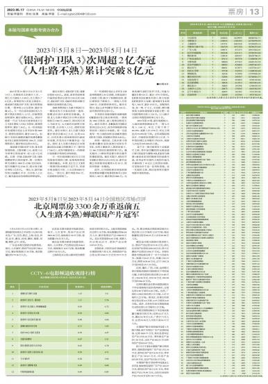 2023年第19周(5月8日至5月14日),本周没有太多新片入市,一周七天大盘收入5.48亿,比上周...