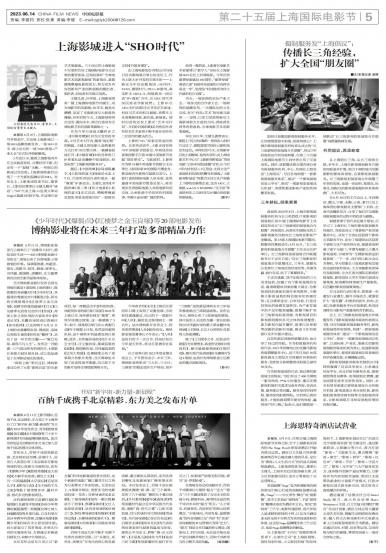 本报讯 6月11日,博纳影业集团在上海举行了“讴歌伟大时代,描绘美好生活——2023博纳...