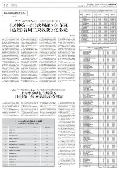 2023年第30周(7月24日至7月30日),本周依然有新片续档,大盘基本与上周持平,七天收入19....
