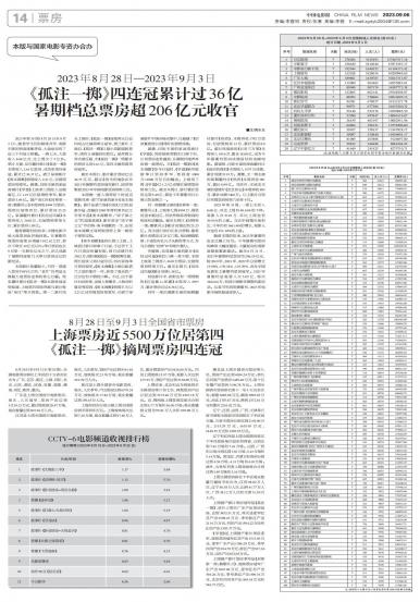 2023年第35周(8月28日至9月3日),随着学生们的陆续开学,电影市场的热度逐渐降低,大盘也经历...
