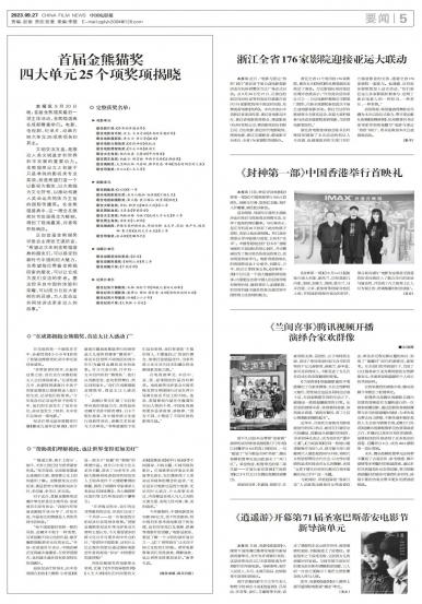 - 首届金熊猫奖 四大单元25个项奖项揭晓