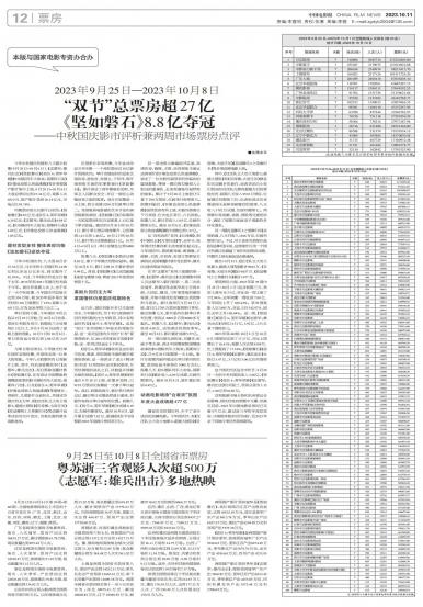 - “双节”总票房超27亿 《坚如磐石》8.8亿夺冠 ——中秋国庆影市评析兼两周市场票房点评