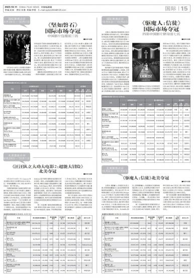 9月29日-10月1日的周末恰逢中国中秋国庆假期,国际周末票房榜单上的前三名均由中国影片包揽,另外还...