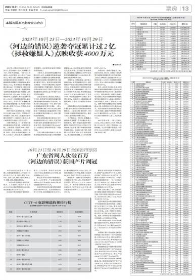 - 广东省周人次破百万 《河边的错误》获国产片周冠