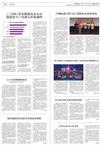 本报讯 中国电影观众满意度调查结果显示,由陈思诚监制、张译领衔主演的刑侦题材影片《三大队》获得85....