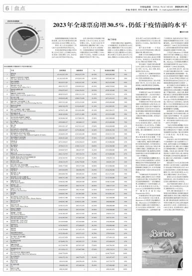 根据英国数据观察公司高尔街的估算,2023年全球票房将达到339亿美元,比2022年增长30.5% ...