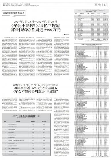 2024年第3周(1月15日至1月21日),电影市场缺少规模新片,依旧靠老片支撑,大盘再度回落。本周...