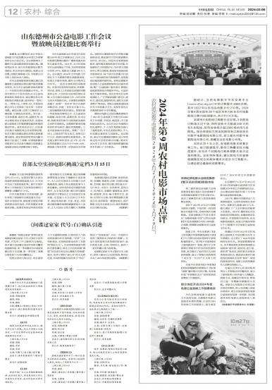 本报讯 山东德州市2023年度公益电影工作总结暨2024年度工作部署培训会议日前召开。会议同期举办了...