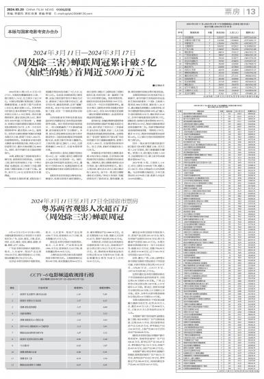 2024年第11周(3月11日至3月17日),本周没有重量级新片上映,一周大盘收入5.4亿,比上周少...