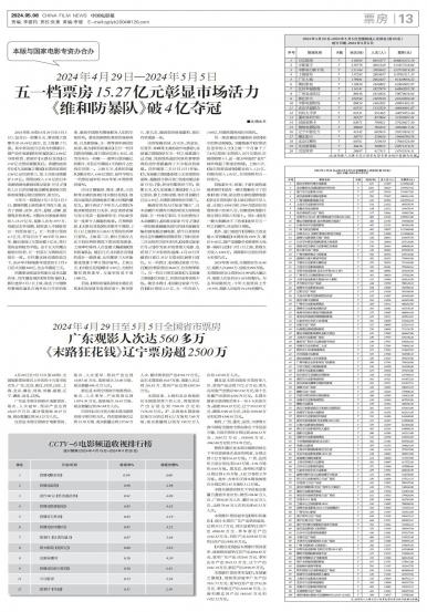 - 五一档票房15.27亿元彰显市场活力 《维和防暴队》破4亿夺冠