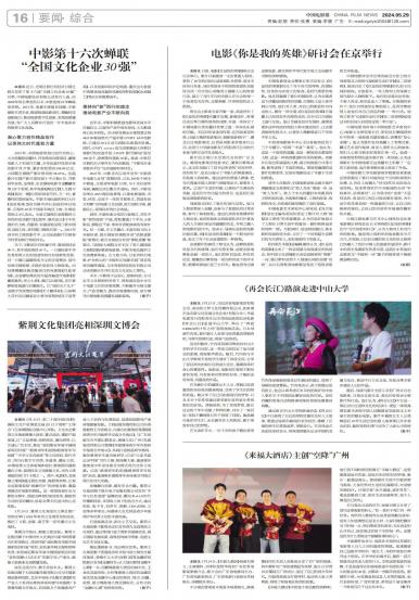 本报讯 近日,光明日报社和经济日报社联合发布了第十六届“全国文化企业30强”名单,中国电影股份有限公...
