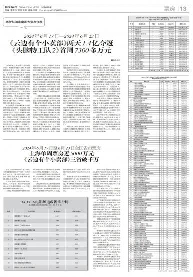 - 《云边有个小卖部》两天1.4亿夺冠 《头脑特工队2》首周7300多万元