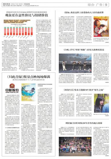 本报讯 近日,猫眼研究院发布《2024暑期档电影数据洞察报告》,(以下简称《报告》),分享多项电影市...