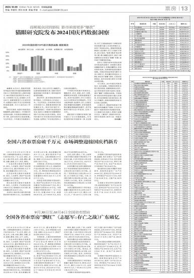 - 猫眼研究院发布2024国庆档数据洞察