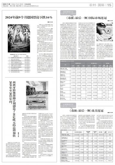 - 《毒液:最后一舞》国际市场连冠