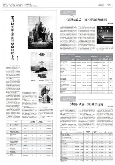 上周末,索尼的《毒液:最后一舞》凭借其在国际市场的强劲表现,继续超出预期,在66个国际市场新增了33...