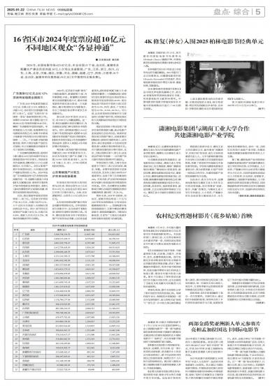 2024年,全国电影市场425.02亿元,来自全国31个省、自治区、直辖市及新疆生产建设兵团共超10...