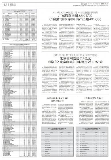 - 江苏省周票房7.7亿元 《哪吒之魔童闹海》山东票房近2.3亿元