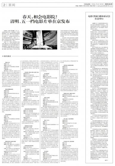 本报讯 (记者 李佳蕾) 4月2日,由国家电影局主办,电影频道、中国电影博物馆、中央广播电视总台新闻...