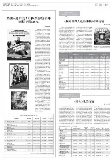 - 英国-爱尔兰3月份票房较去年同期下降35%