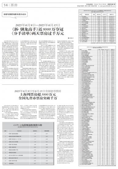 - 上海周票房超3000万元 全国九省市票房突破千万