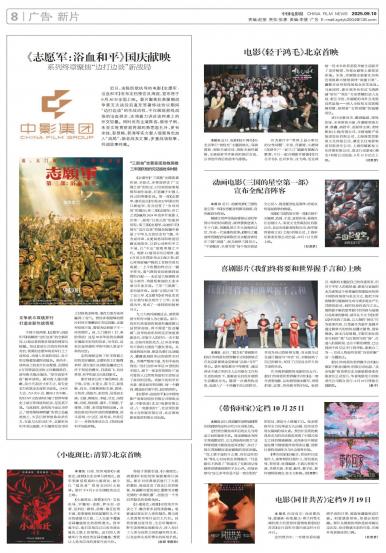 本报讯 近日,电影《轻于鸿毛》在北京举行“放轻松”主题首映礼,导演周铨、领衔主演宋佳、领衔主演佟丽娅...