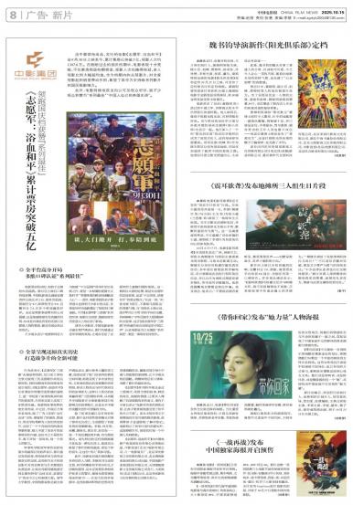 由中影领衔出品、发行的电影《志愿军:浴血和平》自9月30日上映至今,累计票房已突破5亿,观影人次约1...