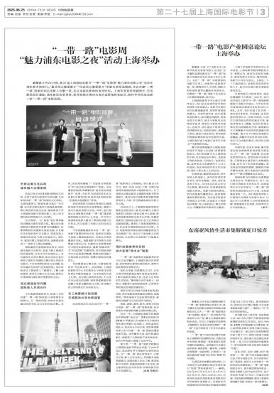 本报讯 6月20日晚,第27届上海国际电影节“一带一路”电影周“魅力浦东电影之夜”活动在浦东美术馆举...