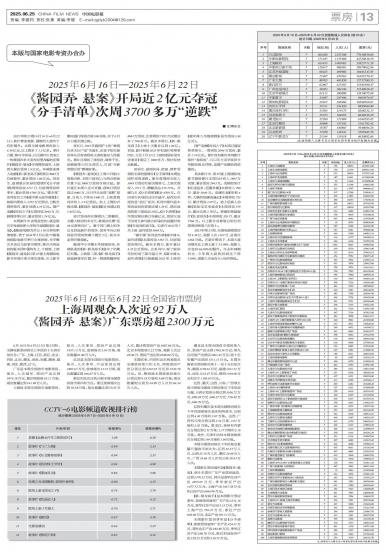 2025年第25周(6月16日-6月22日),新片带动观影,暑期档大盘终于有所提升。本周全国电影票房...