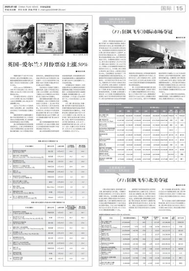 《盐之路》《腓尼基计划》《大卫·爱登堡:海洋》英国和爱尔兰2025年5月份票房收入较去年同期增长50...