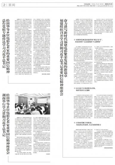 本报讯 习近平总书记给田华等8位艺术家回信,对电影工作者提出殷切期望,在福建省广大电影工作者中引发热...