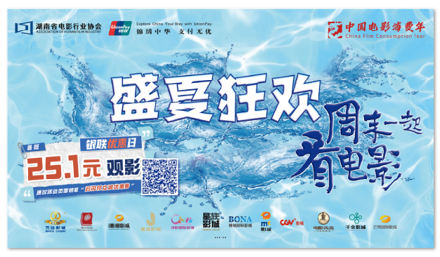 本报讯 为落实湖南省委宣传部、省电影局的部署安排,贯彻执行《促进服务消费高质量发展的若干措施》,激发改善型服务消费活力,通过金融与电影双向赋能深化跨界融合,结合中国电影消费年、银联优惠日等,湖南省电影行业协会、中国银联湖南分公司自2025年7月28日起至2026年3月31日,共同推出“盛夏狂欢——周末一起看电影”活动,探索创新服务消费多元场景,以期更多观众走进电影院,更好地满足个性化、多样化、品质化电影服务消费需求,促进湖南电影市场繁荣,推动湖南省服务消费高质量发展。