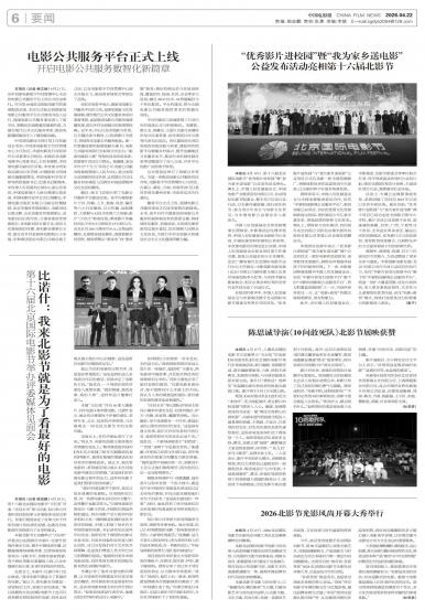 本报讯 (记者 鲍文娴) 4月21日,由中宣部电影数字节目管理中心主办的电影公共服务平台上线仪式在京...